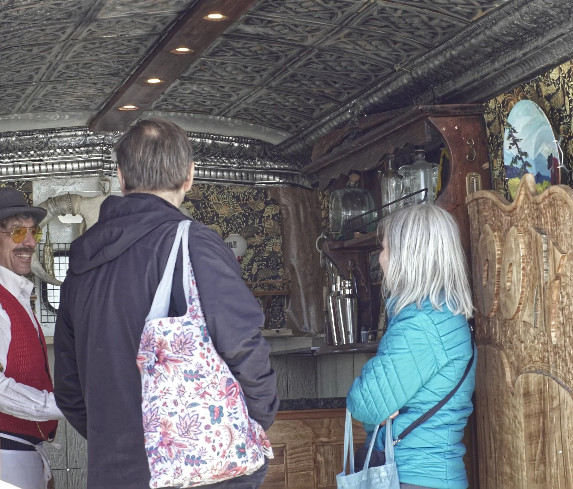 “Fine white dust hung in a sifting cloud above the wagon train, caking the nostrils of animals and men, blanketing the lean sides of oxen and horses, dusting with a thin film the clothing of men and women haggard and worn, hungry for rest and a cool drink.”